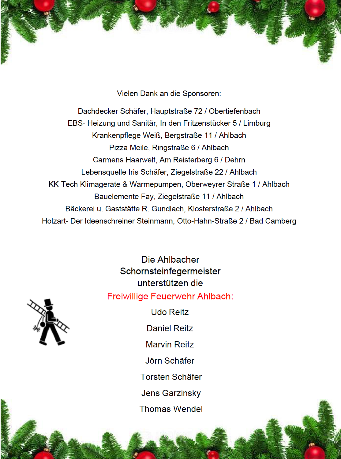 | Samstag, 06. Dezember 2025 19:30 - Einsatzabteilung: Weihnachtsfeier |